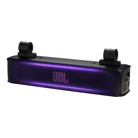 JBL RALLYBAR S is a IP66 rated water resistant Bluetooth® Soundbar with 150Wrms amplifier and extraordinary sound experience to UTVs, golf carts, boats and other vehicles built for recreation. Each RALLYBAR S can be used by itself or connected to multiple RALLYBAR S or RALLYBAR S family products (RALLYBAR, RALLYBAR S and RALLYBAR XL) by using its built-in broadcast mode. The innovative mounting kits design (patent pending) offers multiple position combinations on top and back to accommodate a variety of installation requirements. Bluetooth®, USB disk and Aux-in audio players are supported. HI- Resolution Audio for AUX-IN input audio source is available.